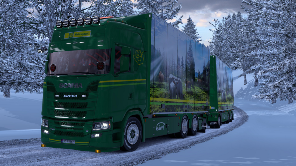 This is the version two of my felleskjøpet skin. I have reworked the body and trailer with new and better picture, and fixed things like painted sideskirts, painted frame and chassis and fenders.